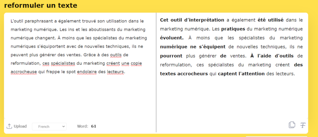 La reformulation est une façon amusante d’améliorer l’écriture en français. Imaginez mettre en œuvre cette compétence pour actualiser ou régénérer le contenu français afin de le rendre plus attrayant. La technique de reformulation créative peut vous aider à mieux écrire. Son objectif est de rendre le contenu plus engageant, plus clair et lisible. C’est simplement comme améliorer votre écriture.